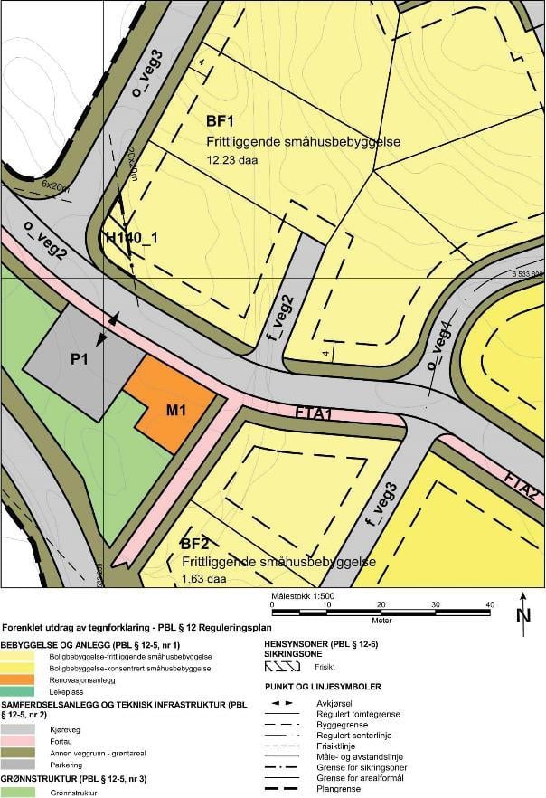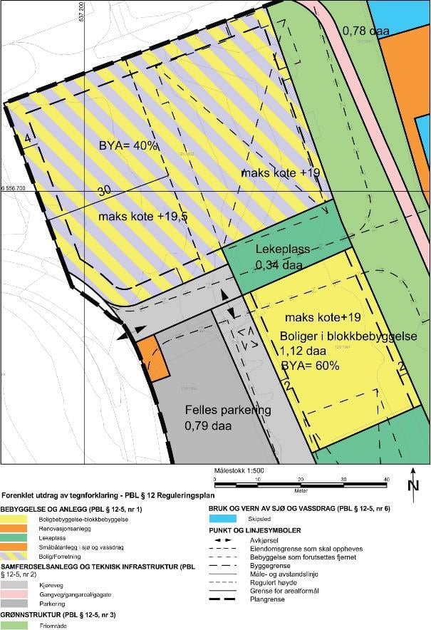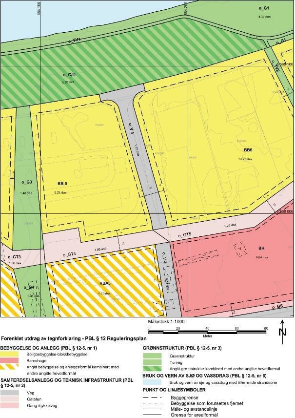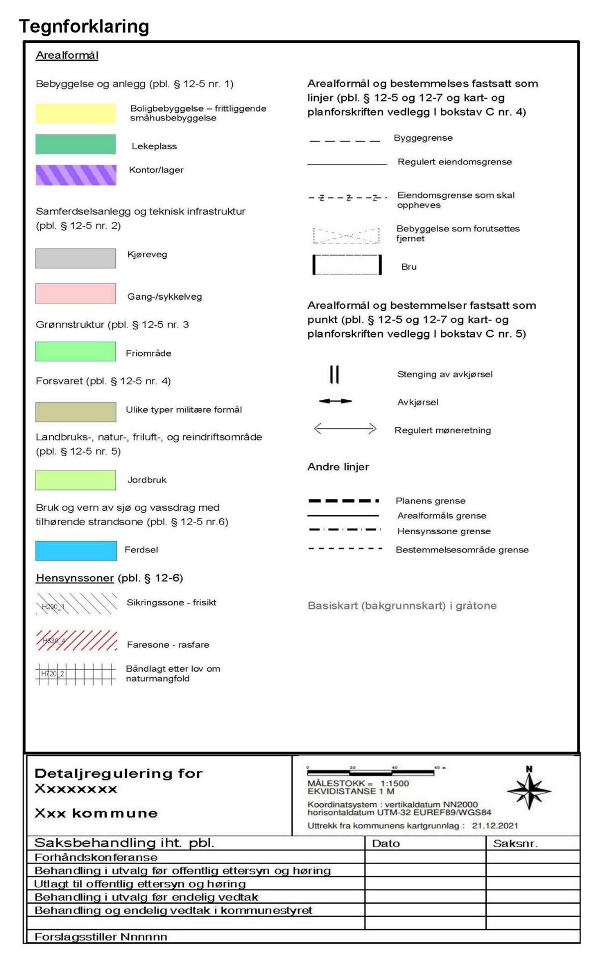 Kapittel 7 Kapittel 7.1 er skrevet om for å gi en tydligere veiledning om plankartets målestokk og tegnforklaring. Ny fig 7.1 som viser hvordan tegnforklaringen kan utformes. | |
