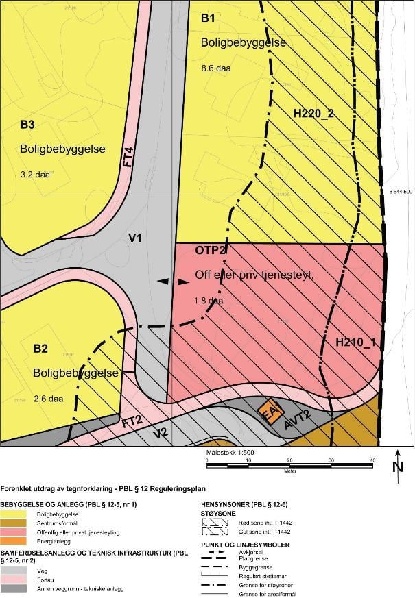 Figur 4.6 Eksempel på plankart med arealformål offentlig eller privat tjenesteyting.