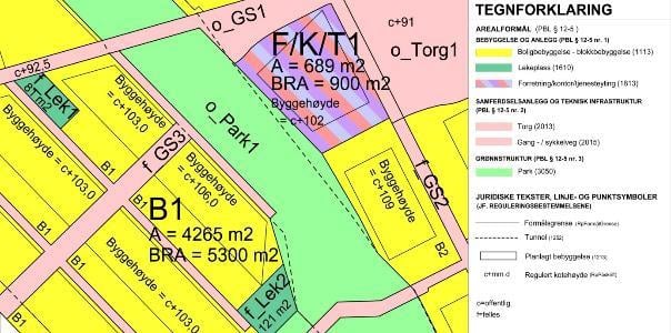 - b) I bindande arealdel av kommuneplan er lagt ut til