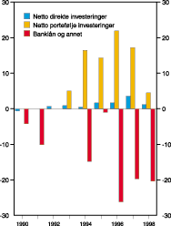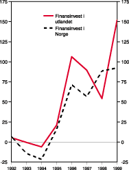 Figur 6-1 Endring i verdiskaping i olje- og gassvirksomhet og havbruk. Mrd. 1999-kroner.