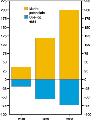Figur 6-2 Potensial for verdiskaping fra marine ressurser. Mrd. 1999-kroner.