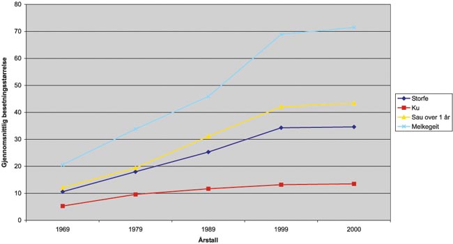 Figur 5.3 Utvikling i gjennomsnittlig besetningsstørrelse.