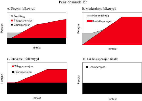 Regjeringen vil komme tilbake med et konkret forslag til utformingen av folketrygden der denne ses i sammenheng med en obligatorisk supplerende pensjonsordning etter at Stortinget har vedtatt hovedprinsippene for en pensjonsreform.