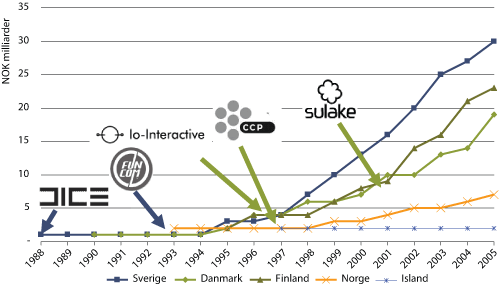 Det nordiske dataspillmarkedet er i sterk utvikling. Det svenske markedet er det eneste nasjonale markedet som viser tegn til å modnes. I alle de nordiske landene har de fleste selskapene som fremdeles er i drift blitt etablert i perioden mellom 2001 og 2005. Dette gir et bilde av en bransje som er sterkt preget av relativt nyetablerte selskaper. På den annen side ble alle de største selskapene etablert før denne perioden. I tillegg står de største selskapene for en betydelig andel av totalomsetningen i sine respektive hjemland.