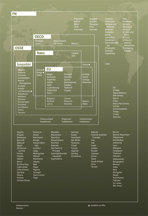 Mangfoldet av ulike nye aktører på den utenrikspolitiske arenaen skaper først og fremst nye muligheter og økt handlingsrom i internasjonal politikk, noen ganger til erstatning for fastfrossede multilaterale strukturer. Norges muligheter til å øve innflytelse i et slikt aktørmangfold vil ikke minst avhenge av vår kompetanse og synlighet på områder hvor vi har forutsetninger for og interesse av å spille en rolle. Evnen til nettopp å forstå og spille på aktørmangfoldet selv om det utfordrer etablerte strukturer, er viktig for å lykkes, illustrert blant annet gjennom Norges rolle i det omtalte klasevåpeninitiativet. Utfordringene tilsier skjerpet fokus på hva som tjener våre interesser, og på hvordan vi kan synliggjøre og effektivisere vår evne til å gjøre en forskjell. Evne og vilje til prioritering blir viktigere jo mer komplekse aktør- og alliansemønstrene blir globalt.