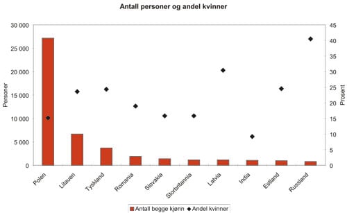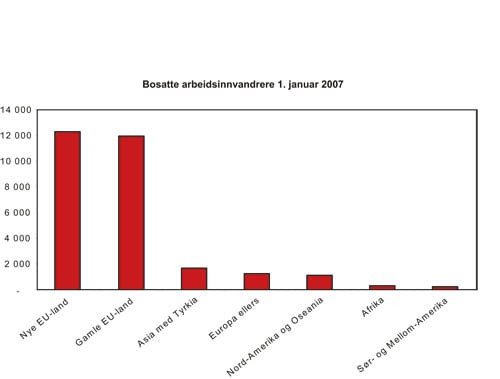 Arbeidsinnvandringen til Norge kommer særlig fra enkelte av de nye medlemslandene i EU, spesielt Polen, samt de andre nordiske landene og Tyskland. Utover sesongarbeid innen landbruk arbeider innvandrerne fra de nye EU-landene særlig i byggenæringen. I økende grad rekrutterer også industrien og deler av servicesektoren (hotell, restaurant, renhold og private hushold) arbeidskraft fra de nye EU-landene. Innenlandske bedrifter innen disse næringene melder om stort behov for arbeidskraft, jf. Arbeids- og velferdsdirektoratets bedriftsundersøkelser i 2007. 1 Høy etterspørsel etter arbeidskraft og et relativt høyt lønnsnivå sammenliknet med arbeidsinnvandrernes hjemland, gjør Norge til et attraktivt land for mange.