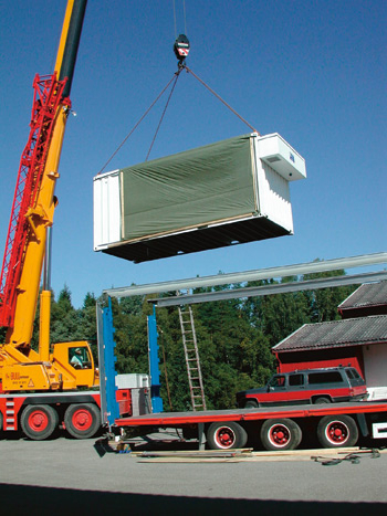 Figur 7.1 Akershus musikkråds første musikkbinge løftes på plass ved Romerike folkehøgskole i 2002.
