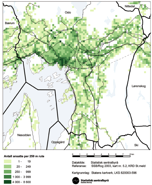 Figur 3.6 Oslo, arbeidsliv – antall ansatte. Mønster 2002