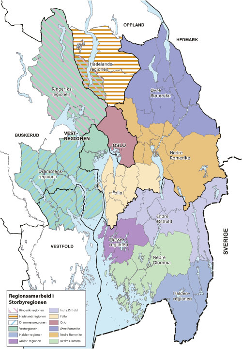 Kommunene som er medlemmer i Osloregionen er vist på kart i fig 2.3.