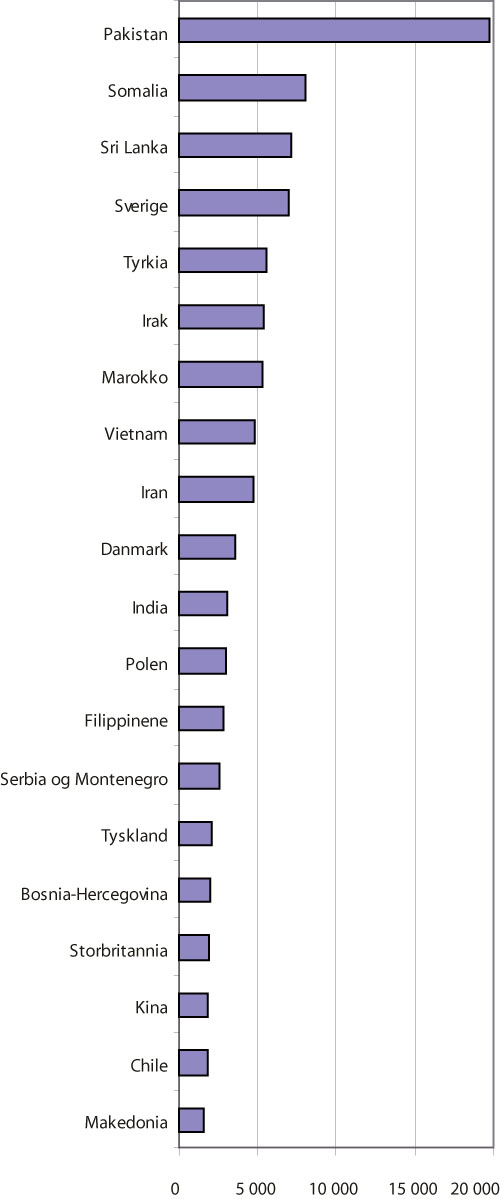 Figur 4.1 De 20 største innvandrergruppene i Oslo per 1.1.2006.