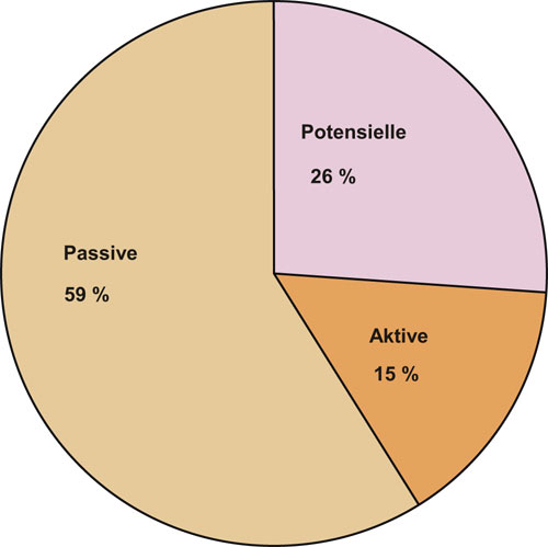 Figur 5.3 Kor aktive er innbyggjarane? Aktive, potensielle og passive (N=1001).