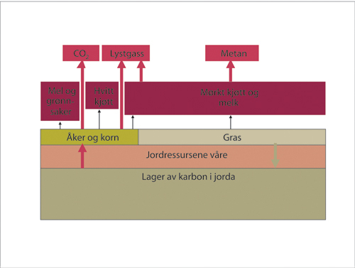 Figur 7.1 Karbonstrømmen i norsk jordbruk.