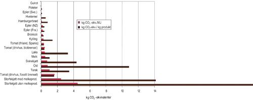 Produksjon av mat genererer klimagassutslipp. Samtidig er det stor usikkerhet knyttet til størrelsen på jordbrukets utslipp. Det er likevel variasjoner, noe som først og fremst er knyttet til den jordbruksmessige praksisen på den enkelte gård mer enn i hvilket land varen er produsert.
