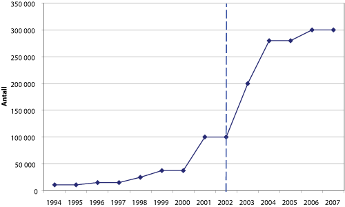 Figur 2.3 Norsk kvoteutvikling for kongekrabbe fra 1994 – 2007