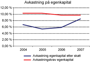 Oppnå en rimelig avkastning på den investerte kapitalen. Avkastningskravet til egenkapitalen og totalkapitalen er satt til henholdsvis 9,7 prosent og 6,45 prosent. Avkastningskravet vil bli sett i lys av at Avinor er pålagt å gjennomføre investeringer som ikke er bedriftsøkonomisk lønnsomme.