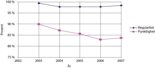 Punktligheten må forbedres. Eksempelvis hadde OSL 88,8 prosent punktlighet i 2003, mens denne var redusert til 79,9 prosent i 2007. Tiltak er igangsatt i samarbeid med flyselskapene.