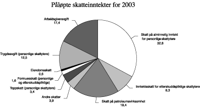 Petroleumssektoren skattlegges særskilt. I 2003 er samlede skatter og avgifter fra petroleumssektoren anslått til om lag 93 mrd. kroner.