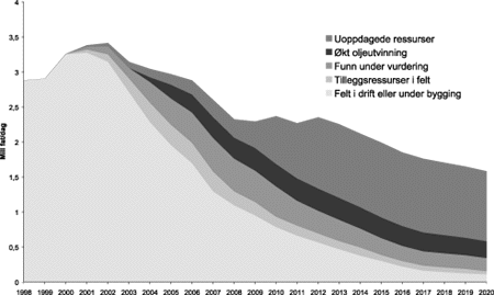 Den norske oljeproduksjonen økte jevnt fra starten i 1971 og fram til midten av 1990-tallet. De siste fire årene har oljeproduksjonen vært stabil med rundt 3 mill. fat per dag. Produksjonen fra norsk kontinentalsokkel forventes å nå et toppnivå i de nærmeste årene for så å avta gradvis. For å kunne avdempe fallet i produksjonen i årene fremover, er en avhengig av at det gjøres nye oljefunn og at det realiseres ressurser det i dag ikke eksisterer planer for å utnytte.