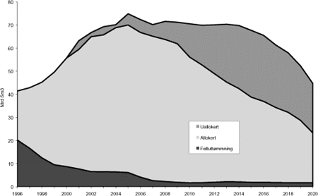 Som det framgår av figuren er det også et betydelig gassvolum som ikke er allokert til konkrete felt.