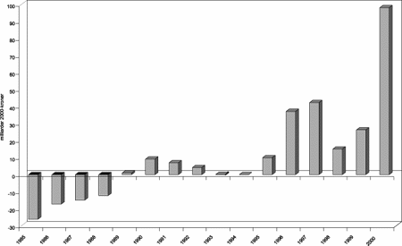 Figur 6-3 Årlig netto kontantstrøm for SDØE i mrd. 2000-kroner