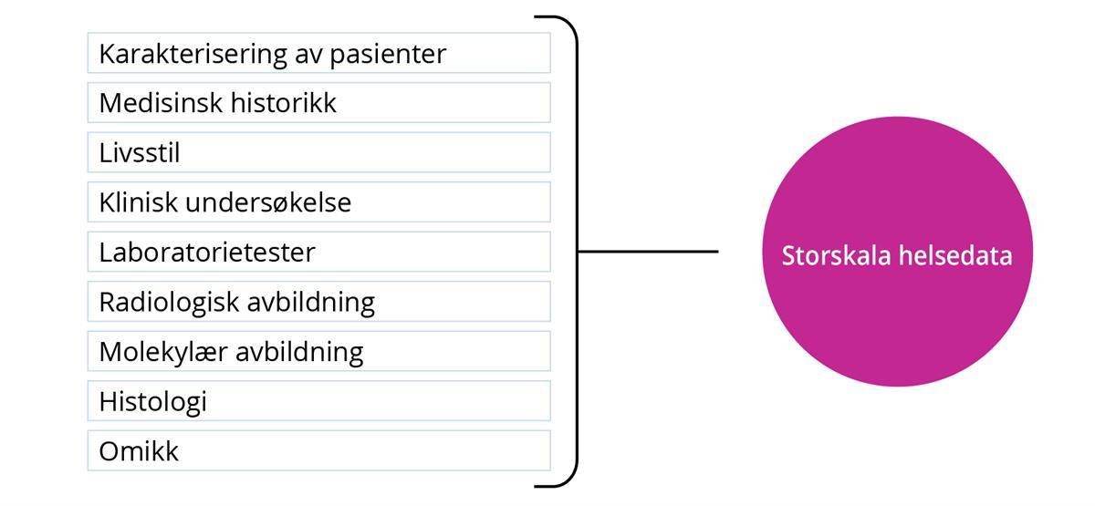 Figur 1: Omfang av heterogene data som inngår i persontilpasset medisin