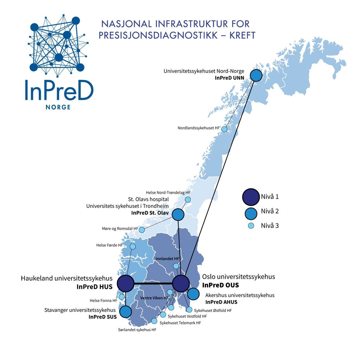 InPreD er en nasjonal infrastruktur for presisjonsdiagnostikk som ble etablert i 2020, på oppdrag fra Helse- og omsorgsdepartementet. Infrastrukturen bidrar til at personer med avansert form for kreft kan få tilgang til molekylær kreftdiagnostikk uavhengig av bosted. InPreD bidrar til å identifisere pasienter som er aktuelle for inklusjon i kliniske utprøvninger eller for godkjent persontilpasset behandling. Målet er at det skal være tilgjengelig diagnostikk ved alle universitetssykehus i landet. Helseforetakene gis refusjon for analysen.