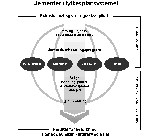 Fylkesplanleggingen er en egnet arena for å utforme og gjennomføre en regional, folkevalgt forankret samfunnspolitikk. Planleggingen dreier seg først og fremst om fylkenes egen politikk - som tar opp i seg de nasjonale utfordringene regionale myndigheter oppfatter som viktigst i planperioden.
