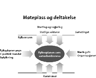 1.13 Fylkesplanleggingen skal styrkes som et samlet system for all offentlig planlegging innen fylket. I dag kan det være vanskelig å forholde seg til de mange, til dels ukoordinerte, planprosessene og utviklings-programmene som blir initiert sentralt, regionalt og lokalt. For å få en mer oversiktlig plansituasjon og utnytte de menneskelige ressursene bedre, er det nødvendig å redusere antall samarbeidsarenaer og -prosesser.