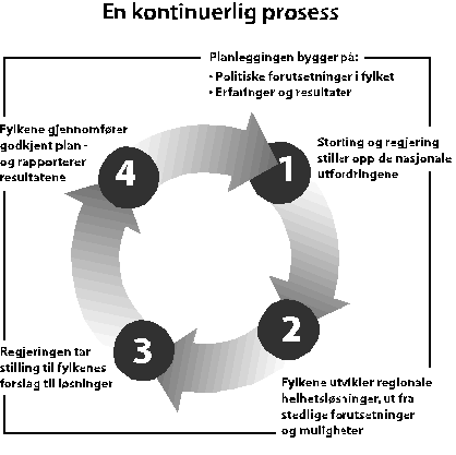 Opplegget bygger på et omfattende utviklingsarbeid som fylkes-kommunene, Kommunenes Sentralforbund og staten har samarbeidet om de siste årene, og som regjering og Storting har gått inn for i St.meld. nr. 29 (1996-97) Regional planlegging og arealpolitikk, jf Innst. S. nr. 219 (1996-97).