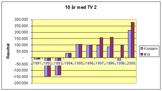 Resultatutvikling TV 2 1991-2000