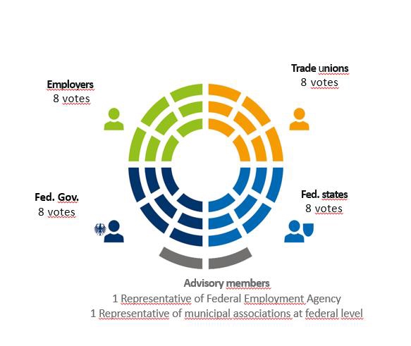BIBB styres av partene i arbeidslivet sammen med representanter fra føderalt så vel som fra delstatsnivå (se sammensetning under).