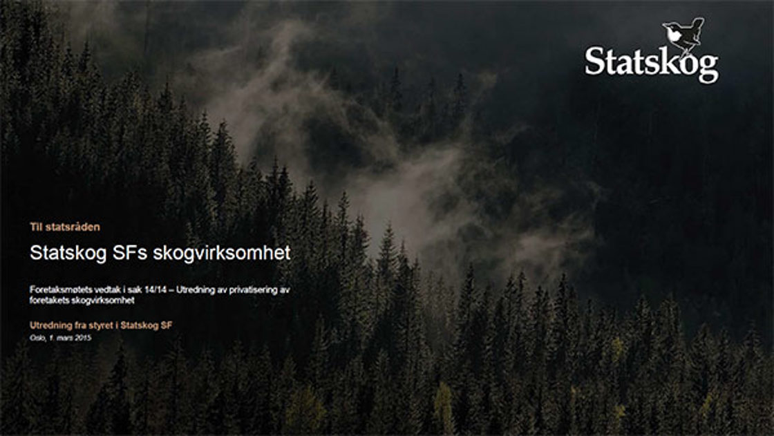 Foretaksmøtet vedtok i sak 14/14 å be Statskog SF forberede privatisering av foretakets skogvirksomhet gjennom å utrede ulike modeller for privatisering og organisering av skogvirksomheten på økonomisk drivbare arealer, og økonomiske og praktiske konsekvenser av modellene.