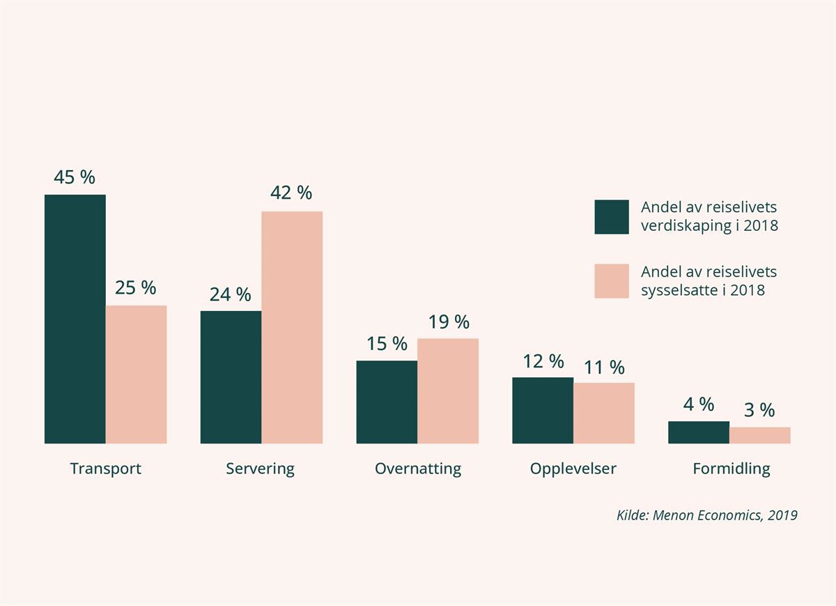 Dette gjør reiselivet til Norges femte største eksportnæring. Eksportbidraget fra reiselivet har økt betydelig det siste tiåret, blant annet som følge av styrket tilgjengelighet med flere internasjonale flyruter, et styrket opplevelsestilbud og svakere kronekurs. Disse faktorene har bidratt til høy vekst i utenlandske besøkende til Norge, hovedsakelig fritidsreisende (Menon Economics, 2019).