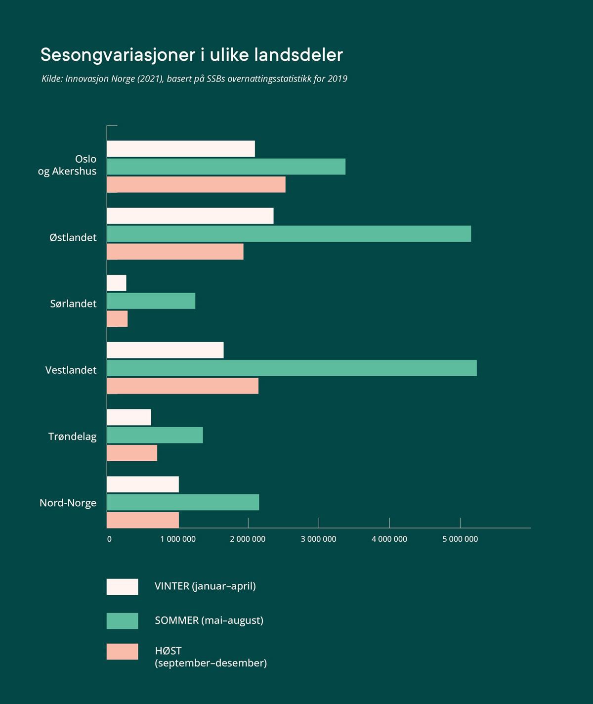 Kilde: Innovasjon Norge (2021), basert på SSBs overnattingsstatistikk for 2019
