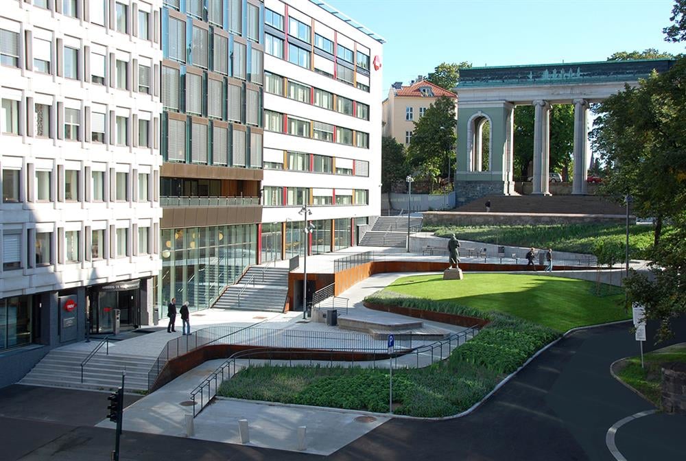Reguleringsplanen omfattet et større bygg, friområdet som utgjør plassen samt noe tilgrensende gateareal. Universell utforming av friområdet er sikret i reguleringsplanen gjennom følgende bestemmelse: