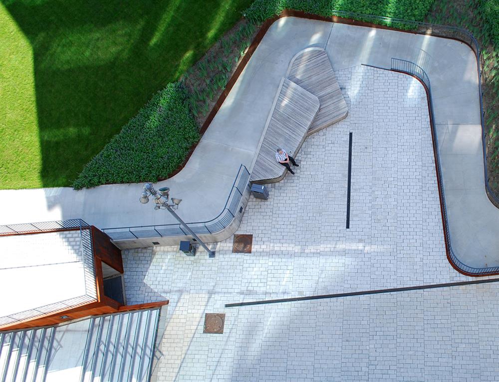 Schandorffs plass sto ferdig i 2009 og ble tegnet av landskapsarkitektene Østengen & Bergo AS.