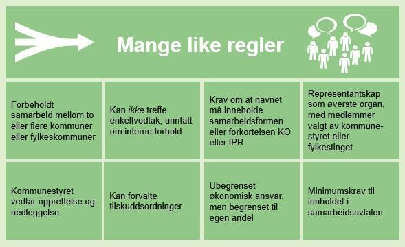Figur 6.1 Mange like regler for interkommunalt politisk råd og kommunalt oppgavefelleskap