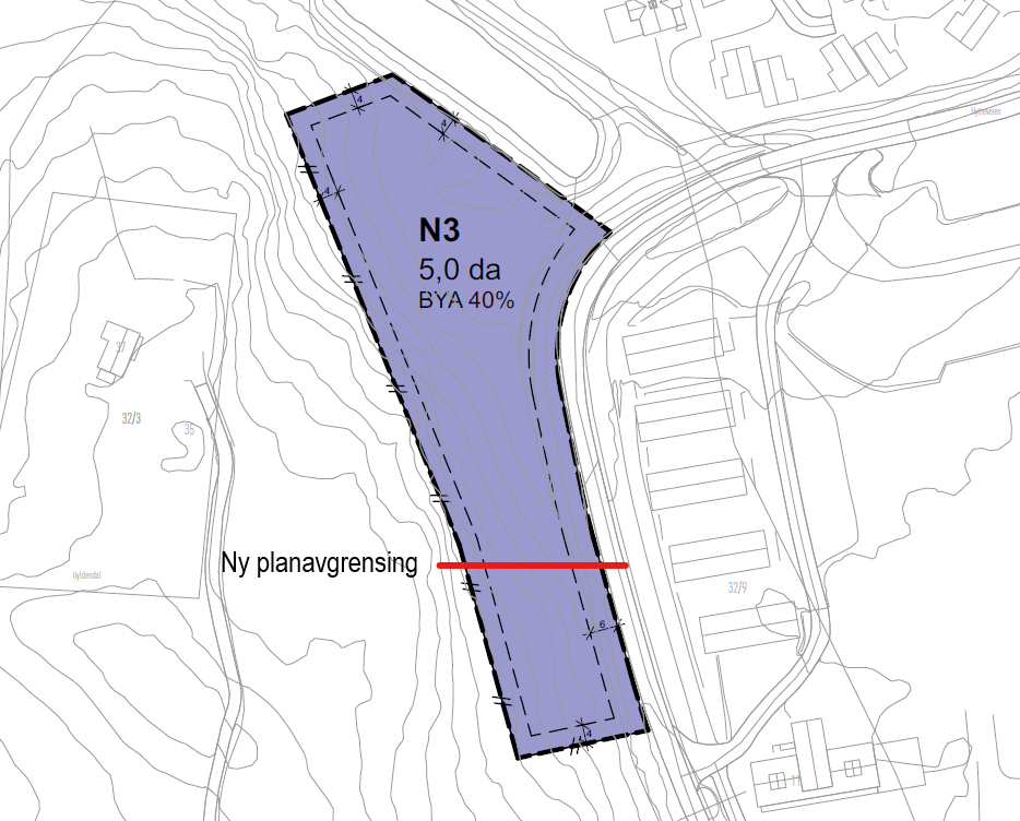 Vedlegg: Kartutsnitt som syner ny planavgrensing.