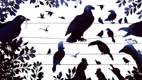 Kollasj av illustrasjoner. En famile. Fem eldre med hver sin stokk. Kommunevåpen og riksløve.
