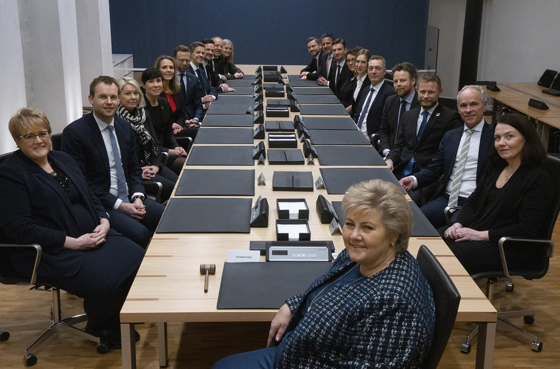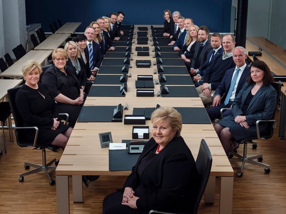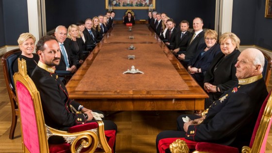 I følge Grunnloven er det Kongen som i statsrådsmøte utnever statsrådene og bestemmer hvilke departement de skal styre.