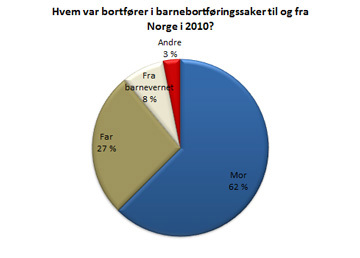 En gjennomgang av tallene for 2010 viser at det er mor som oftest bortfører barnet/barna. I 2010 var mor bortfører i 64 prosent av sakene, far i 26 prosent av sakene, og andre i 2 prosent av sakene. I 7 prostent av sakene ble barnet/barna bortført fra barnevernet. Bortføringen ble da utført av enten mor eller far, eller av begge.
