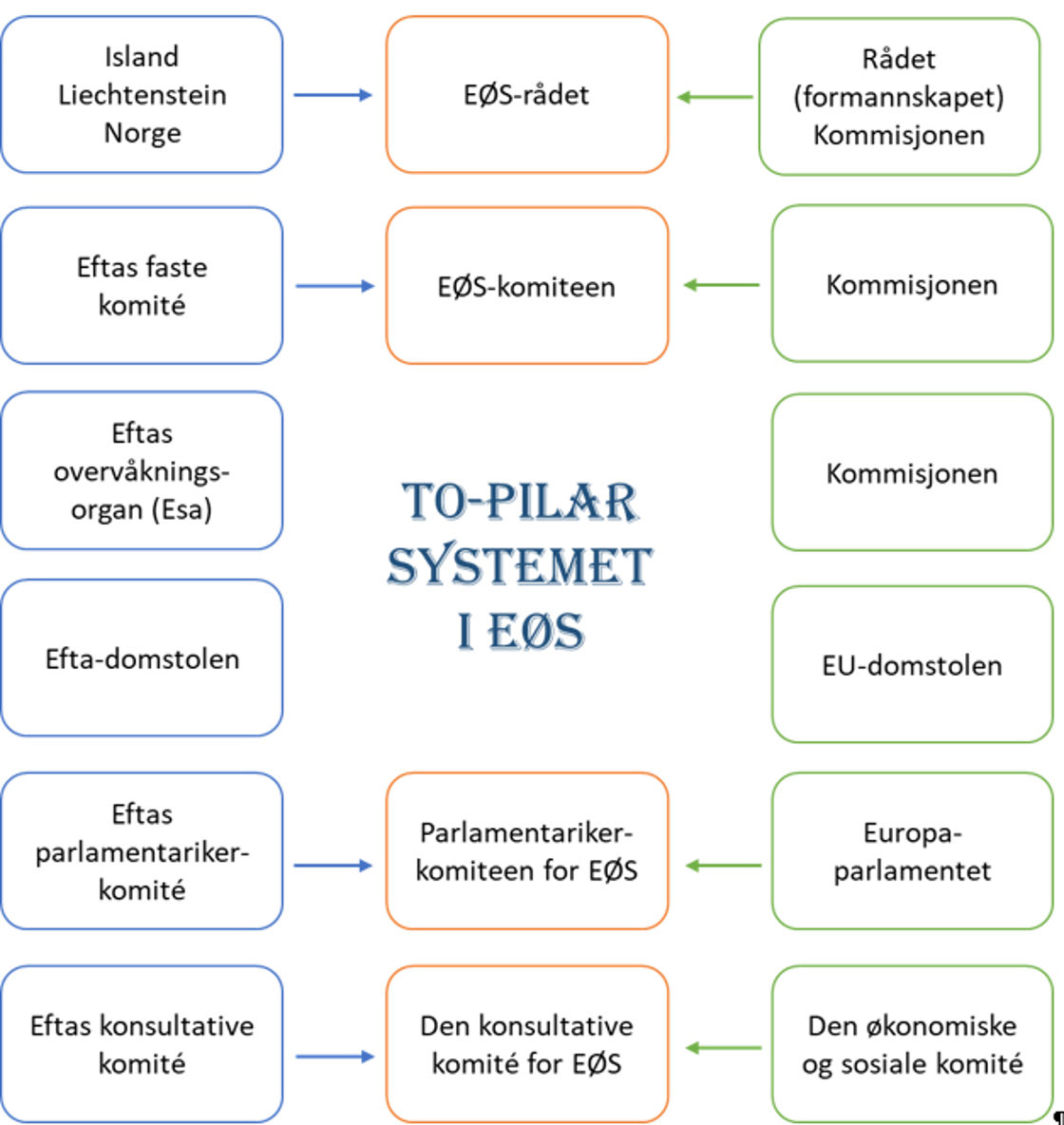 Hovedprinsippet i EØS er at Efta og EU utgjør to pilarer i samarbeidet. Det institusjonelle rammeverket for EØS-avtalen blir derfor omtalt som et topilarsystem.