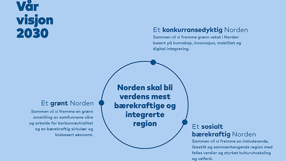 Våre felles nordiske verdier er navet som skal bidra til at Norden skal bli verdens mest bærekraftige og integrerte region innen 2030.