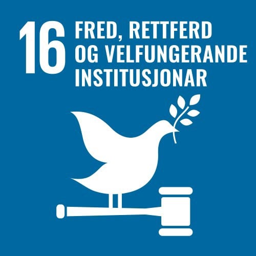 Fremje fredelege og inkluderande samfunn for å sikre berekraftig utvikling, sørgje for tilgang til rettsvern for alle og byggje velfungerande, ansvarlege og inkluderande institusjonar på alle nivå