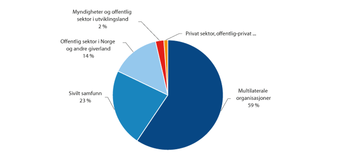 Sivilsamfunnsorganisasjonene er også internasjonalt viktige aktører, og forvaltet 23 prosent av samlet norsk bistand i 2020. Norske organisasjoner samarbeider med fagorganisasjoner, kirkesamfunn, og representanter for marginaliserte grupper på landnivå og bidrar til tjenestelevering. De er også aktive endringsaktører internasjonalt og i Norge. Samarbeidet med privat sektor for å mobilisere ytterligere finansielle ressurser til utviklingsland fra flere kilder står sentralt i norsk utviklingspolitikk.