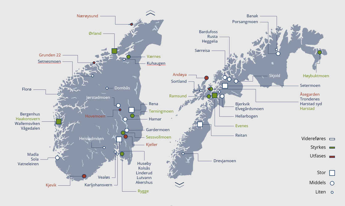 I den nye langtidsplanen er det flere endringer i baser og lokalisering