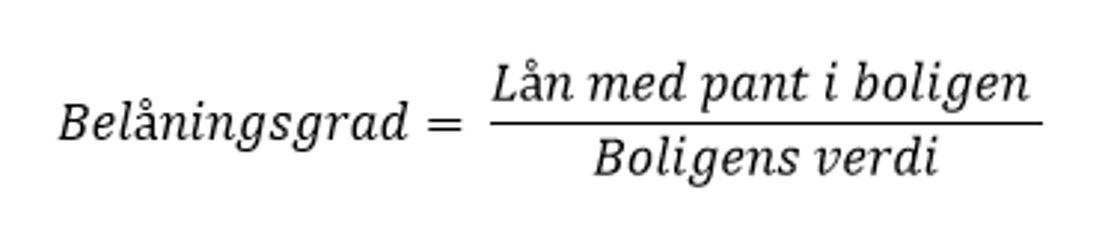 - Lånets størrelse i forhold til boligens verdi (belåningsgrad)
