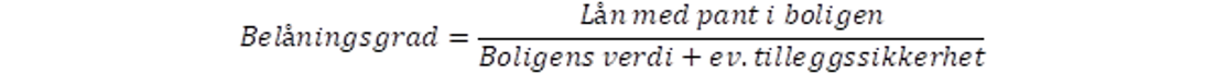 - Lånets størrelse i forhold til boligens verdi (belåningsgrad)
