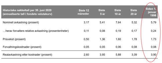 Avkastning av SPU målt i fondets valutakurv. Årlig geometrisk gjennomsnitt. Prosent |