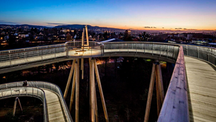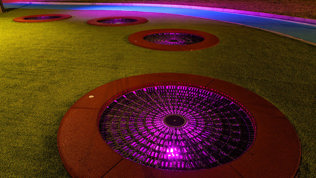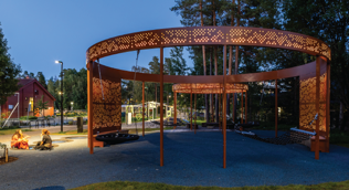 Stadionparken midt i Levanger sentrum skulle utvikles til en innovativ aktivitetspark med hovedvekt på uorganisert aktivitet for barn og unge. Lysdesignet er nøye gjennomtenkt for å skape en stemningsfull og trygg opplevelse for brukerne. Farget belysning fremhever de ulike sonene i parken og gir stedet en unik karakter etter mørkets frembrudd. Den dynamiske belysningen skaper en levende atmosfære, som både forsterker parkens estetiske uttrykk og øker tilgjengeligheten for alle brukere. Lysdesign: Norconsult. Foto: «Steinkjerfotografen»
